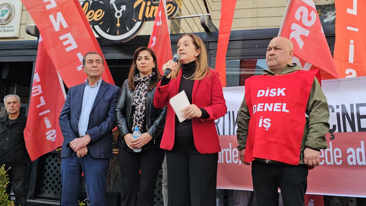 Milyonlarca işçi ve emeklinin açlık sınırının altında yaşamaya mahkûm edildiğini söyleyen Çerkezoğlu, gelirde ve vergide adalet mücadelesinin aynı zamanda adalet ve demokrasi mücadelesi olduğunu ifade etti.