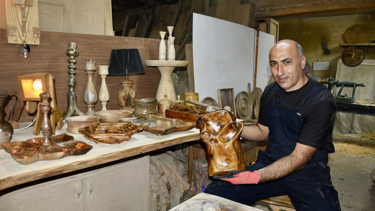 Mesai saatlerinin dışında vaktinin büyük bölümünü atölyede geçiren Kaçar, ahşaptan dekoratif süs ve mutfak eşyası üretiyor.