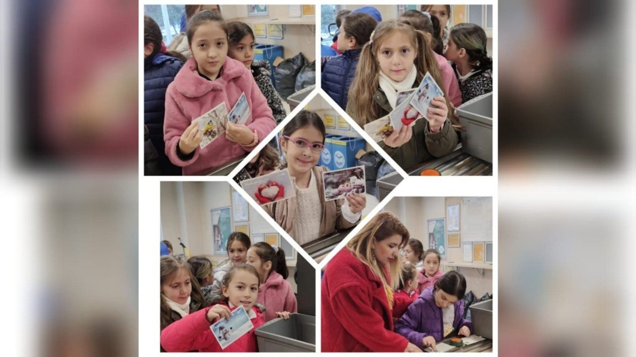 Minik öğrencileri PTT’ye getiren Sınıf Öğretmeni Dilek Kıran ise yılbaşı ve özel günlerde duyguların ifadesi için kullanılan mektuplar tebrik kartları ve kartpostallar; cep telefonu mesajları ile elektronik postaların yaygınlaşması sonucu teknolojiye yenik düştüğünü hatırlatarak;