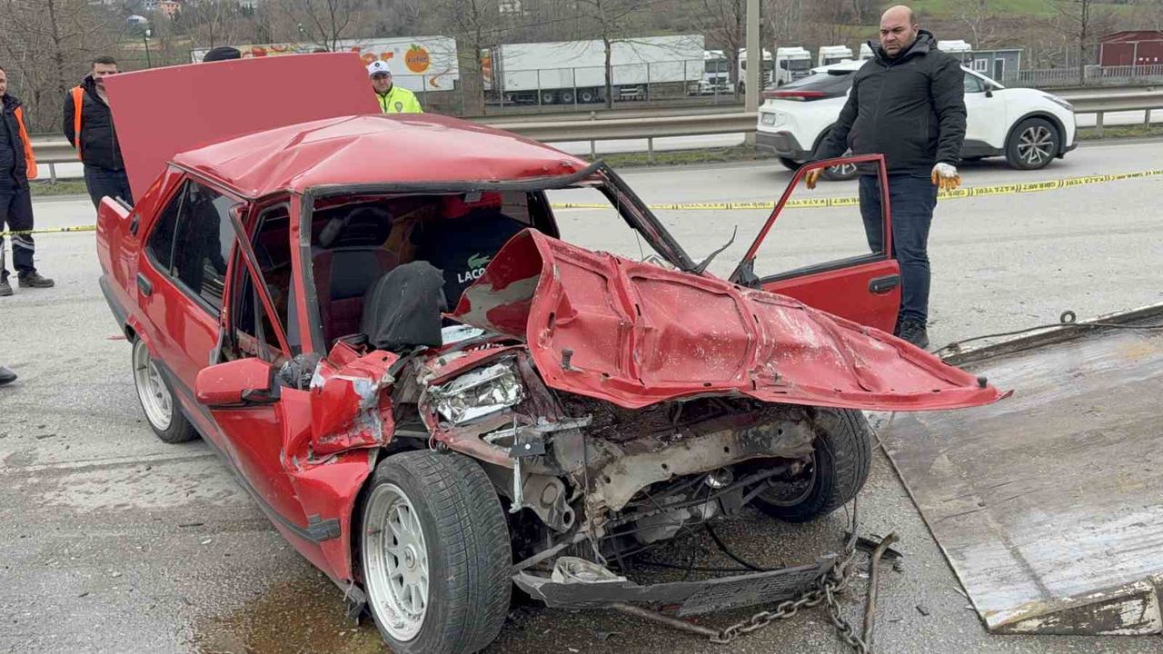 Kaza yapan otomobilin arka camında 'Sık kafana açılırsın' yazısı ise dikkat çekti.