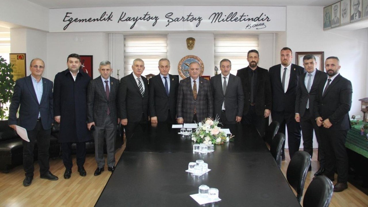 Ticaret Odası Başkanı Atıf kesim ve Oda meclis üyeleri Başkan Kurdoğlu'nu makamında ziyaret etti.