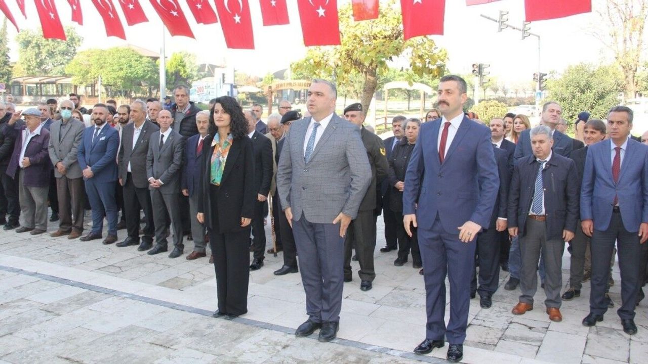 Program saygı duruşu ve İstiklal Marşı’nın okunması ile başladı. Ardından Milli Eğitim Müdürlüğü çelengi İlçe Milli Eğitim Müdürü Aytaç Akgümüş tarafından Atatürk anıtına sunuldu.