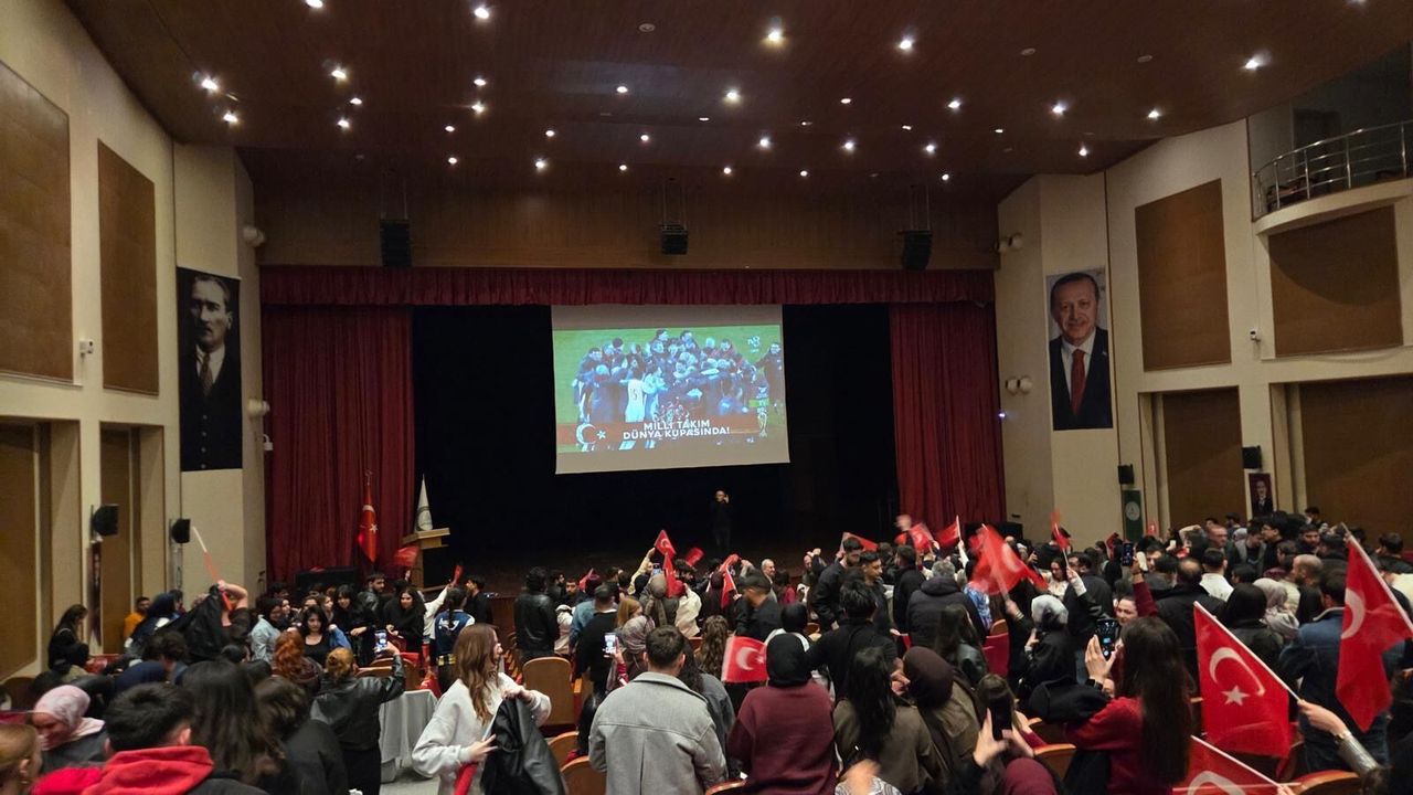 Üniversitenin sosyal medya hesaplarından yapılan paylaşımlarla rağbet gösteren öğrenciler A Milli Futbol Takımı'nın 2026 FIFA Dünya Kupası Avrupa Elemeleri final mücadelesinde Kosova ile yapacağı karşılaşmayı izlemek için kültür merkezine akın etti.