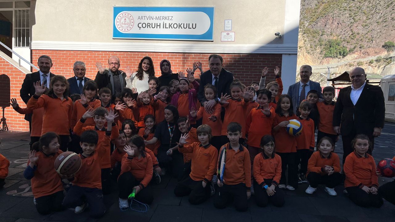 Törenin ardından öğrenciler, antrenörler eşliğinde spor malzemelerini kullanarak çeşitli etkinlikler gerçekleştirdi. Çoruh İlkokulu bahçesinde düzenlenen etkinlikte voleybol, futbol ve koordinasyon oyunlarıyla öğrenciler keyifli anlar yaşadı.