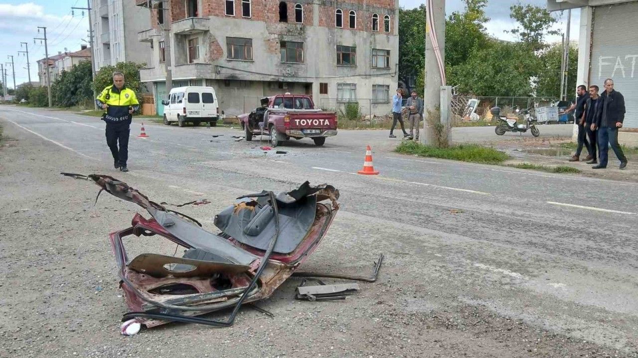 Kaza, Fatih Mahallesi Hal Caddesi’nde meydana geldi. Edinilen bilgiye göre, ilçe merkezine seyir halinde olan Abdullah Kısa (57) yönetimindeki 06 DNA 5513 plakalı kamyon ile karşı yönden gelen Mehmet Şişman idaresindeki 55 NE 822 plakalı pikap çarpıştı. Kazada kamyonun kasasına çarpan pikap hurdaya döndü, sürücüsü yaralandı. İhbar üzerine olay yerine sevk edilen sağlık ekipleri, yaralı sürücüyü Bafra Devlet Hastanesi’ne kaldırdı.