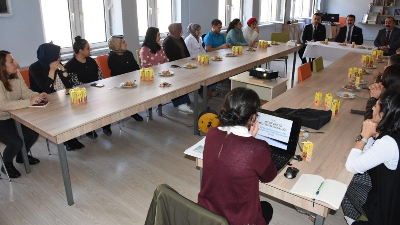 Okul yöneticileri ve öğretmenlerin katıldığı toplantıda Ölçme Değerlendirme Merkezi tarafından hazırlanan sınav analiz tablosundaki sayısal veriler değerlendirildi ve ortaöğretimde ildeki başarının artması için yapılması gereken çalışmalar belirtildi.