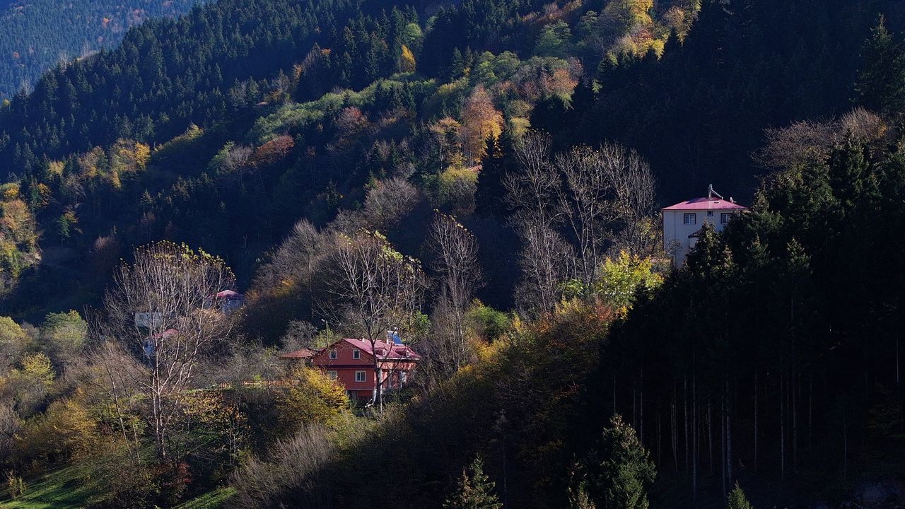 Trabzon'un Maçka ilçesine bağlı Zigana Dağı eteklerindeki Hamsiköy, sonbaharda doğanın en canlı tonlarını sergiliyor.