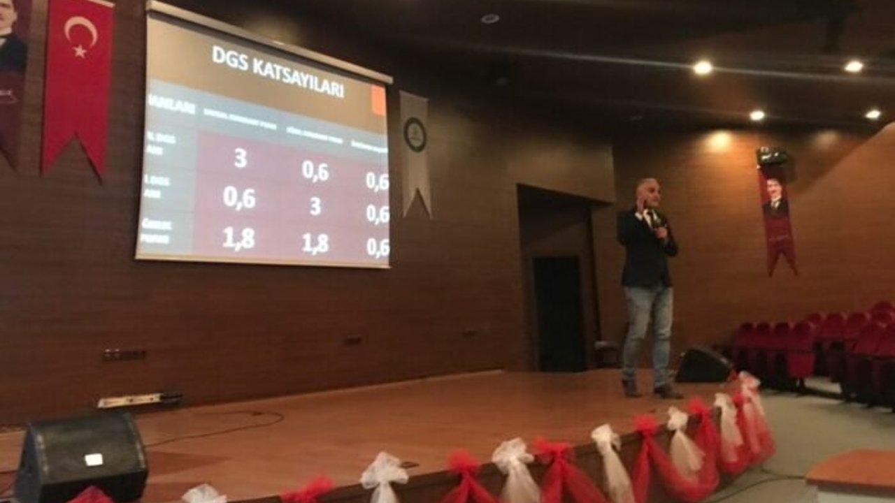 Dikey Geçiş Sınavı hakkında bilgi veren Anıl Kınay” DGS genellikle Temmuz ayında bahar döneminde yapılan bir sınav Ön Lisans ve Açık Öğretim ön lisans mezunları DGS’ye girerek lisans eğitimine katılabiliyor. Nitelikli bir sınav ve ön lisans başarı puanı dediğimiz sizin diploma notunuzun da çok değerli bir şekilde anılmasına sebep olur. Sayısal DGS alanı ile sayısaldan girerseniz sizin sayısal sorularınızın puanı 3 ile çarpılıyor, sözel puanı 0,6 ile çarpılıyor ve ön lisans başarı puanı dediğimiz de 0,6 ile çarpılıyor. İki alandan da mutlaka 0,5 net yapmanız gerekmektedir. Sınav ağrılığı sözcükte anlam, cümlede anlam, paragraf, okuduğunu anlama ve analiz etmedir” dedi.