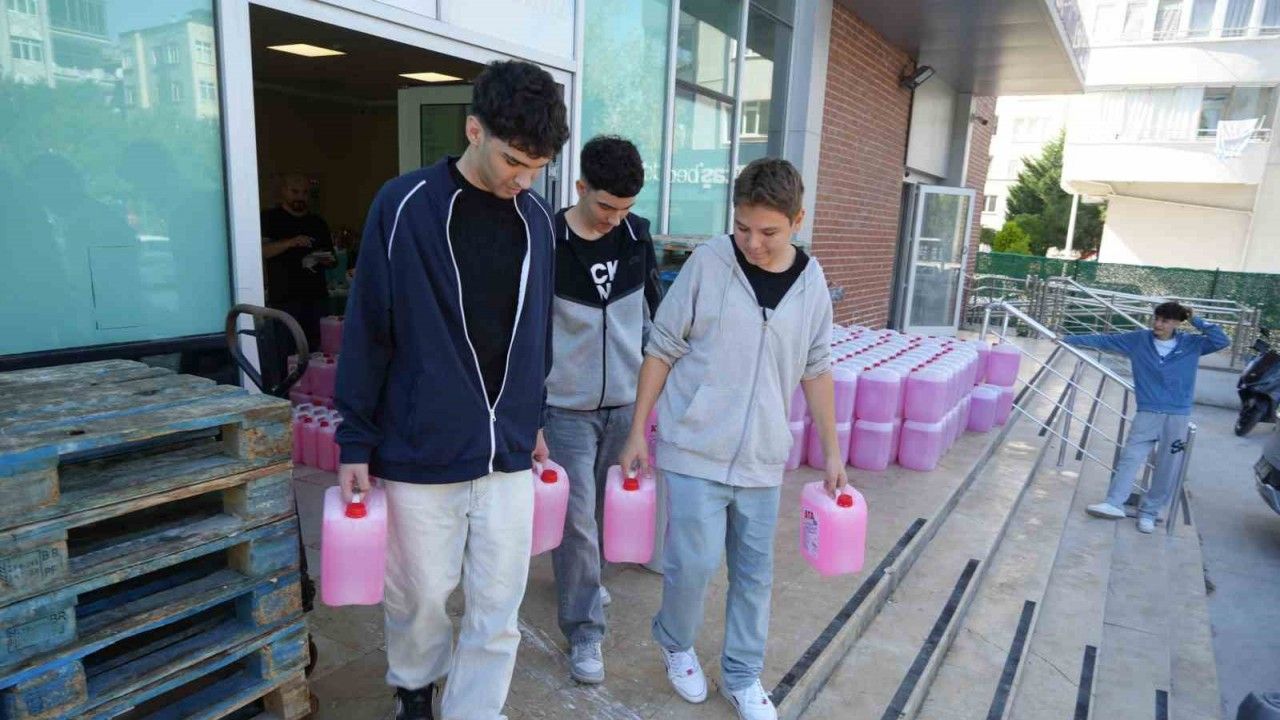 Samsun’da "fabrika gibi lise" olarak bilinen Atakum Mesleki ve Teknik Anadolu Lisesi’nin kimya bölümü temizlik malzemesi üretmeye devam ediyor. Kurumlar yaptıkları anlaşma gereği lise, yıl sonuna kadar 150 ton temizlik malzemesi üretmek için kolları sıvadı. KYK yurtları ve gençlik merkezlerine verilmek için çamaşır suyu, yüzey, temizleyicisi ve sıvı el sabunu gibi temizlik malzemesi üreten lise çalışmalarını sürdürüyor.