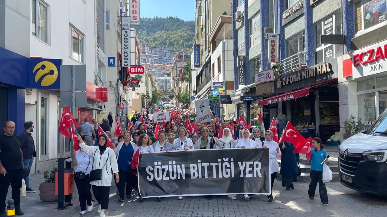 6 Ekim Pazartesi günü saat 12.30’da Halitpaşa Meydanı’nda toplanan kadınlar, yapılan basın açıklamasının ardından Artvin Valiliği önüne kadar sessiz bir yürüyüş gerçekleştirdi. Ellerinde Türk ve Filistin bayrakları taşıyan katılımcılar, hiçbir slogan atmadan Gazze’de yaşanan insanlık dramına dikkat çekti.