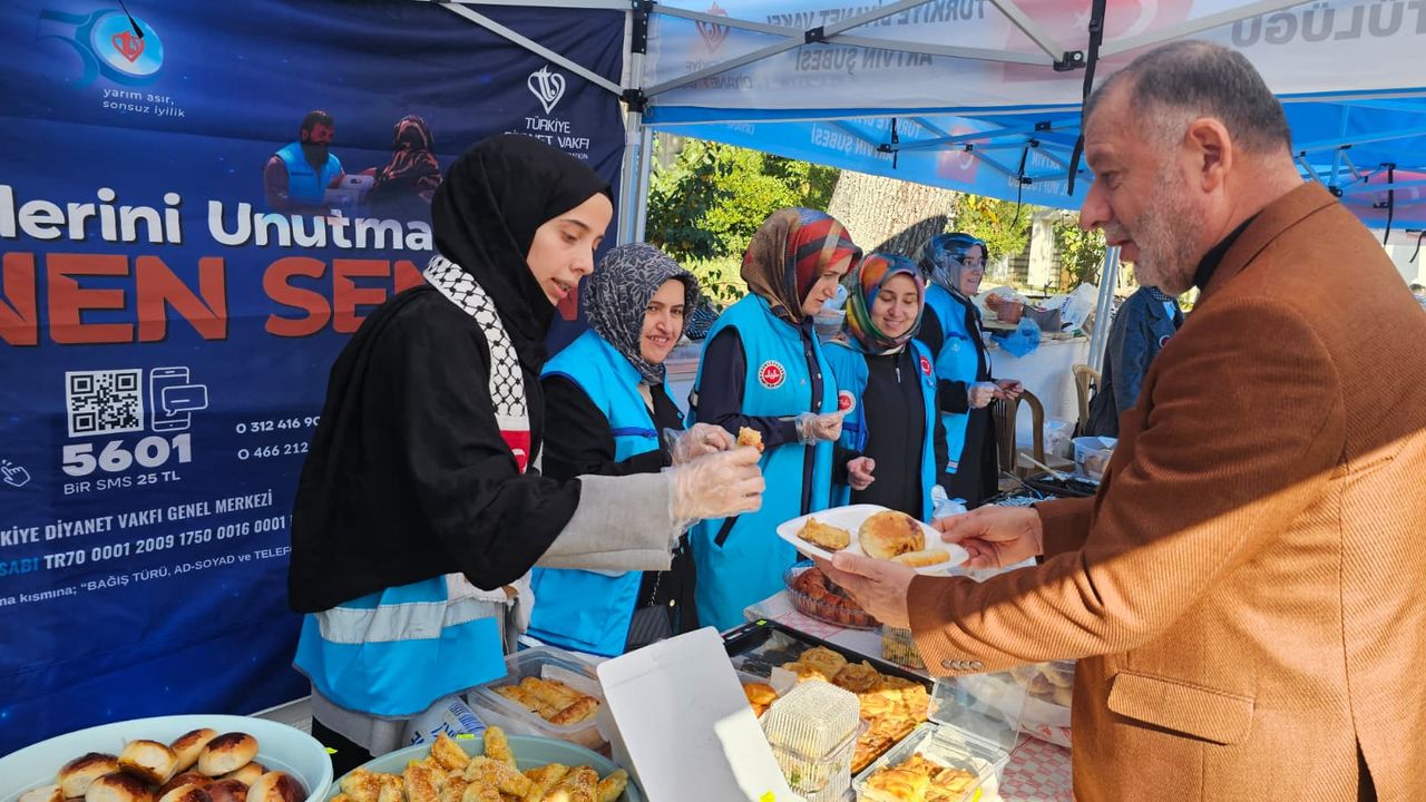 Valilik önündeki Milli İrade Meydanı’nda kurulan çadırlarla vatandaşların hizmetine sunulan çarşıda, TDV gönüllüleri tarafından hazırlanan yiyecekler, içecekler, Artvin döneri ve çeşitli hediyelik eşyalar satışa sunuldu. Çarşının geliri, tamamen Gazze’deki ihtiyaç sahiplerine bağışlanacak.