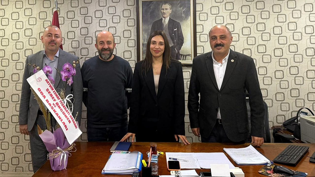 Gizem Çiçek’i makamında ziyaret eden Artvin Esnaf ve Sanatkârlar Odası Birliği Başkanı Şeref Öngüner, Uğur Çiftçi ve Artvin İl Ticaret Müdürü Abdullah Yıldırım, hayırlı olsun dileklerini ileterek yeni görevinde başarılar diledi.