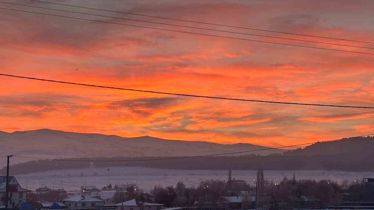 Ardahan'ın Damal ilçesinde güneşin doğuşu ile birlikte gökyüzü kızıla büründü. Ortaya büyüleyici görüntüler çıktı. Ardahan-Damal kara yolunu kullanan sürücüler o anları ölümsüzleştirmek için fotoğraf ve görüntü çekti.