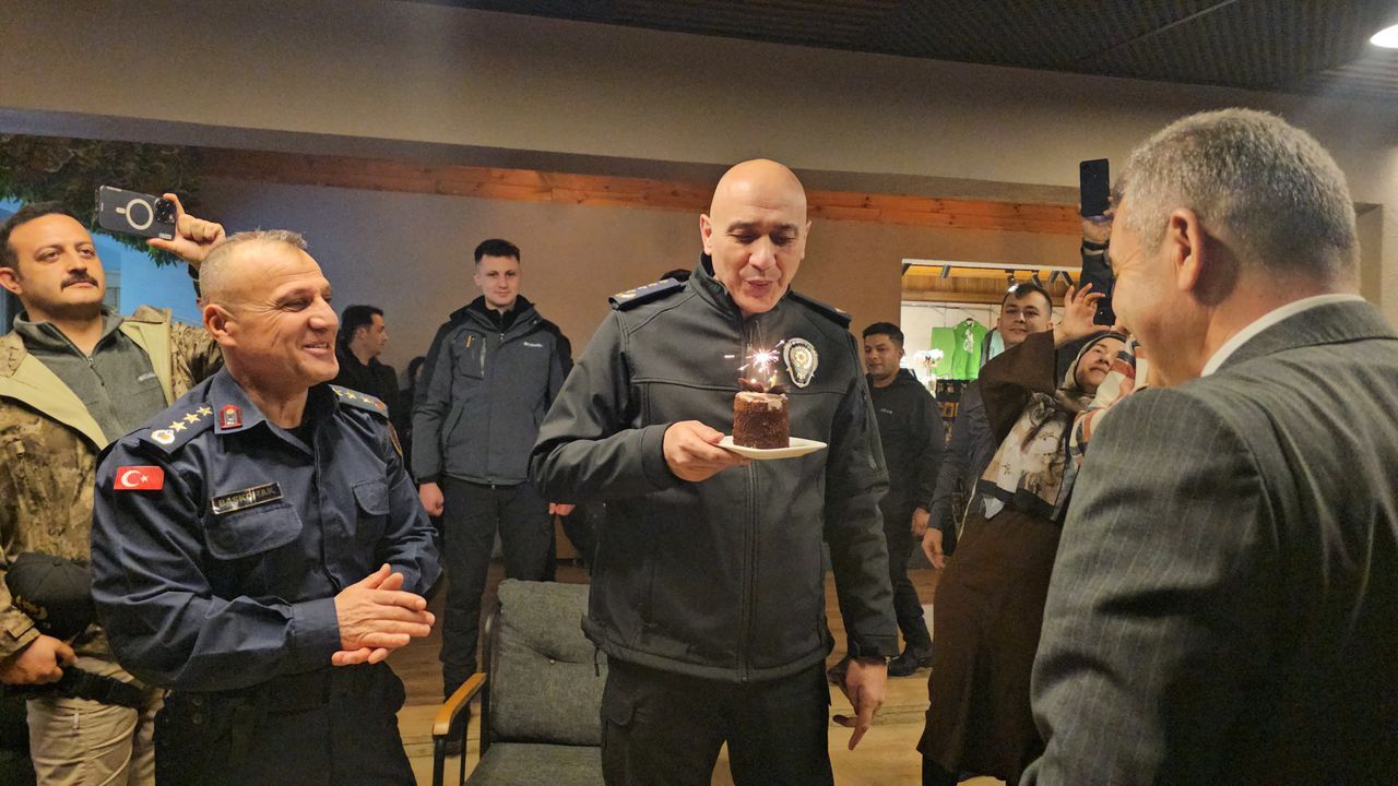 Akşam saatlerinde basın mensuplarıyla gerçekleştirilen iftar yemeğinin ardından, jandarma ekipleri Artvin İl Emniyet Müdürü Murat Güneş için özel bir doğum günü kutlaması hazırladı.