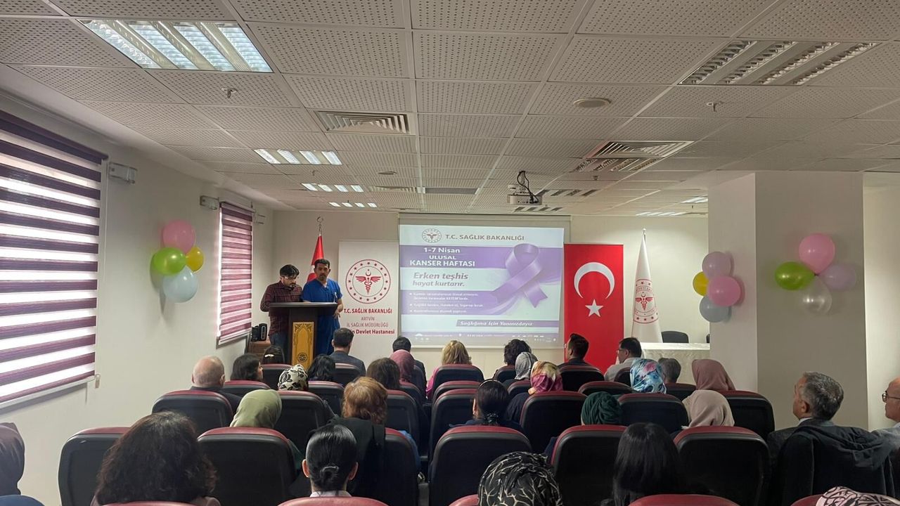 Artvin İl Sağlık Müdürü Yunuz Arslan ise kanserin günümüzde önemli bir halk sağlığı sorunu olduğunu belirterek, hastalığın görülme sıklığının arttığına dikkat çekti. Kanserin büyük ölçüde çevresel faktörlerden kaynaklandığını ifade eden Arslan, düzensiz beslenme, hareketsiz yaşam ve teknoloji kullanımının risk faktörleri arasında yer aldığını söyledi. Arslan, “Eğer bir hastalık önlenebiliyorsa, erken teşhis edilebiliyorsa ve tedavisi varsa, bu halk sağlığı sorunudur ve bunun ile sonuna kadar mücadele edeceğiz. Her ülkenin tarama testleri farklı. Bizde 3 tane kanser taraması var, biliyorsunuz: meme kanseri, rahim ağzı kanseri ve kolon kanseri. Çünkü bizim ülkemizde bunlar sık görülüyor. Sık görüldüğü için de taramaya değer. İkinci bir şey de erken teşhise imkân vermesi lazım. Mesela akciğer kanserini taramıyoruz. Çünkü herkesi taraman lazım, radyasyon alacak. Bunlar değer görmüyor bakanlıkta ama rahim ağzı kanserini, meme kanserini, kolon kanserini çok basit testlerle tarıyoruz ve erken teşhise imkân veriyor. Bu üç kanserin de tedavisi mümkün ve toplumda belki tanıyorsunuz; bir sürü insan bunu yeniyor. Biz de Artvin’de ne yapıyoruz? KETEM aracılığıyla kanser erken teşhis eğitim merkezimizle bu hizmeti sunuyoruz. Eğer aile hekiminize giderseniz ve yaş durumunuz uygunsa, kendi yapabileceği testleri kendisi yapıyor. Yapamayacağı testler için de hastaneye sizleri yönlendiriyor” dedi.