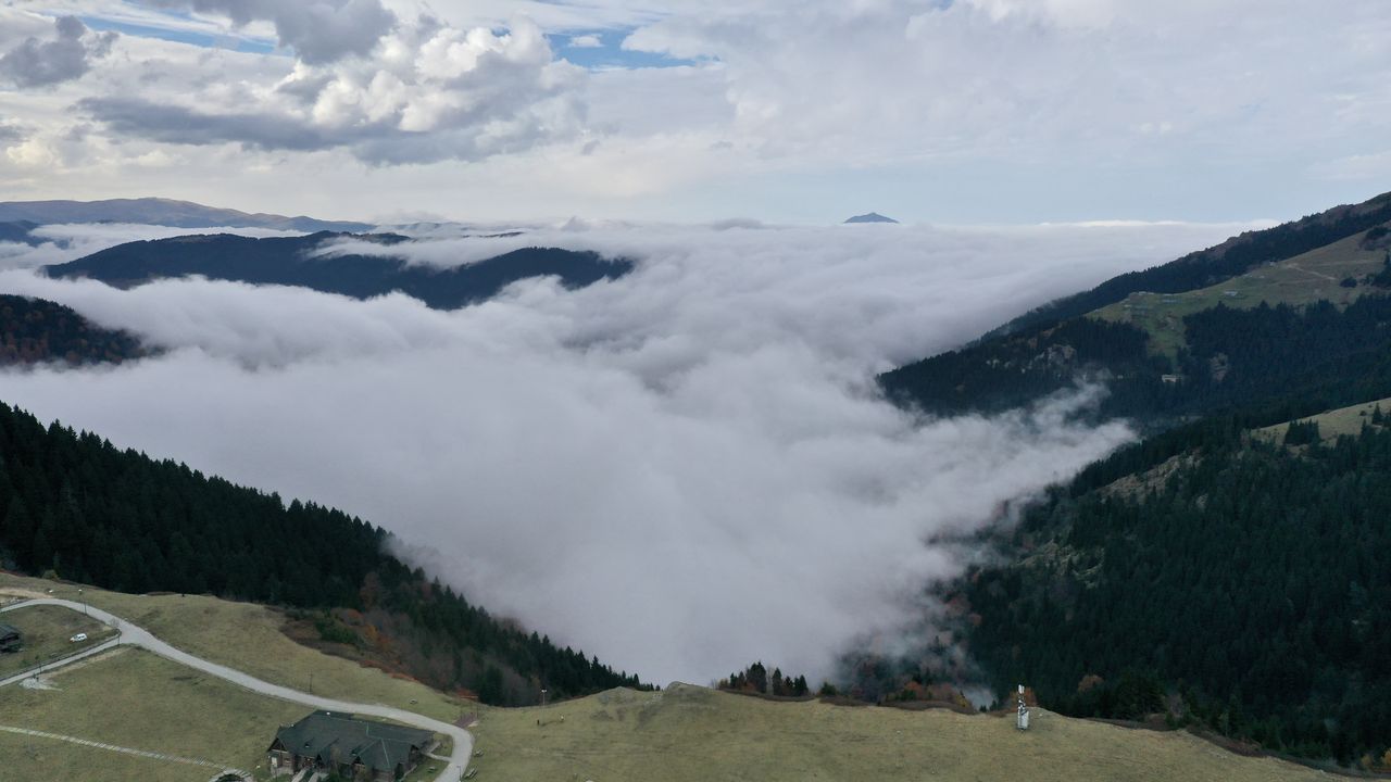 Ladin ve köknar ağaçlarıyla kaplı ormanlarla bütünleşen siste ortaya güzel görüntüler çıktı.