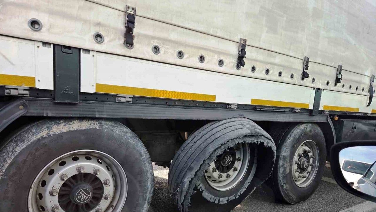 Olay, bugün saat 14.00 sıralarında Çarşamba ilçesinde meydana geldi. Samsun istikametine seyir halinde bulunan 38 plakalı bir lojistik firmasına ait tırın sağ arka grubunda bulunan tekerlerinden ortadakinin lastiğinin yarıldığı görüldü. Durumu fark eden diğer sürücüler kısa süreli endişe yaşarken, korna çalarak tır şoförünü uyardılar.