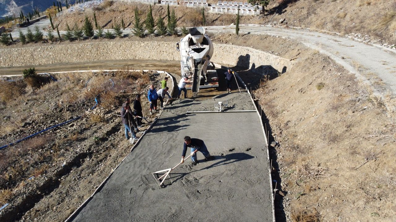 Yusufeli Belediyesi, mezarlık bölgesindeki yol sorununu çözmek için beton yol çalışması başlattı.