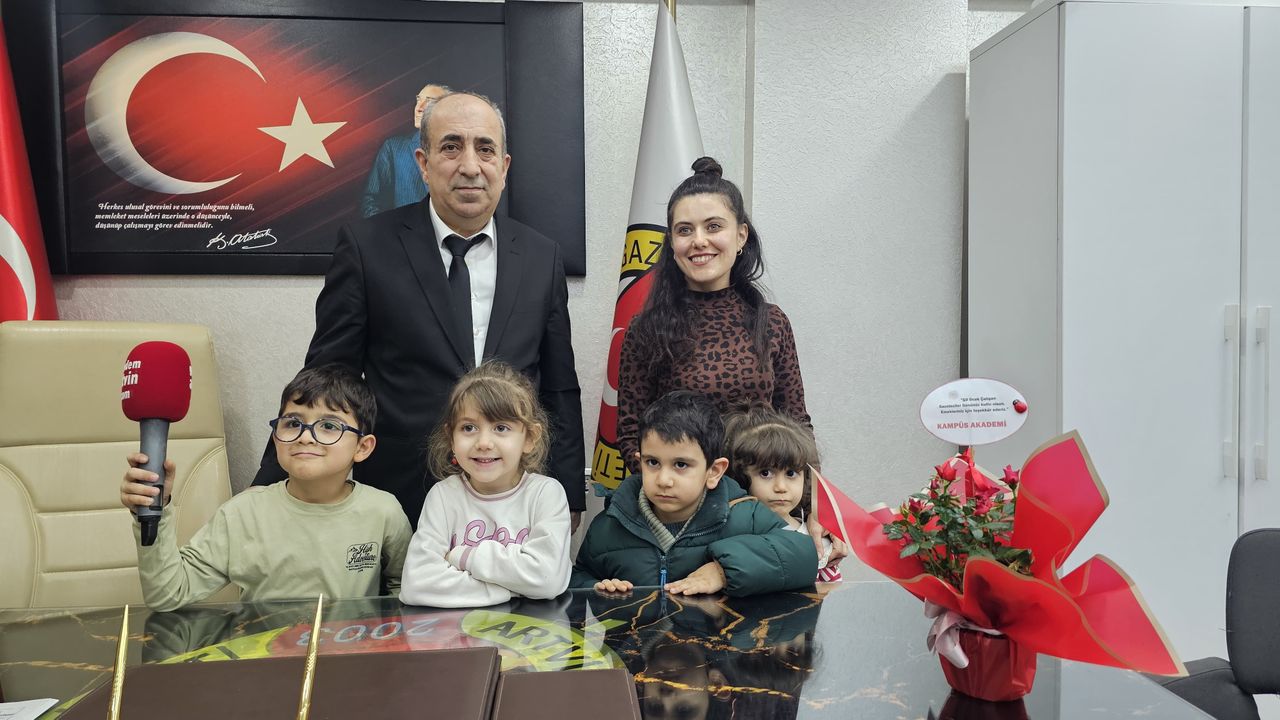 Minik öğrenciler, hazırladıkları çiçek ve hediyeleri Başkan Alkan’a takdim ederek gazetecilere duydukları sevgiyi ve saygıyı ifade etti.