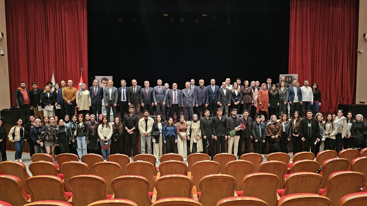 Programda ayrıca, şehit öğretmenin babasına lisans diploması takdim edildi ve üniversite personeli ile öğrencilere teşekkür belgeleri sunuldu. Etkinlik, öğrencilerin hazırladığı sunumlar ve müzik dinletileriyle sona erdi.