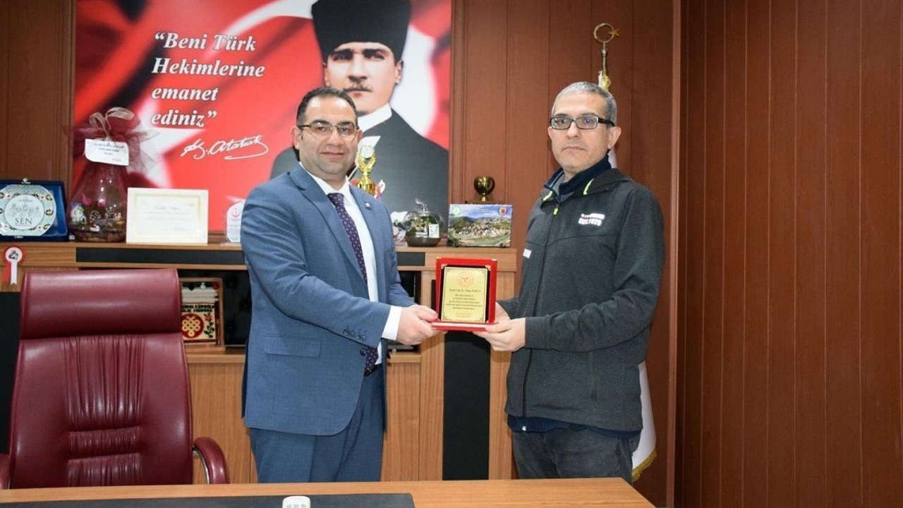 Cumhurbaşkanlığı Kararnamesi ile Adalet Bakanlığı Adli Tıp Kurumu Beşinci Adli Tıp İhtisas Kurulu Halk Sağlığı Üyeliğine atanan Artvin Merkez Toplum Sağlığı Merkezi Başkanı Uzman Dr. Ahmet Baran'a, İl Sağlık Müdürü Operatör Dr. Gürol Köroğlu tarafından plaket taktim edildi.