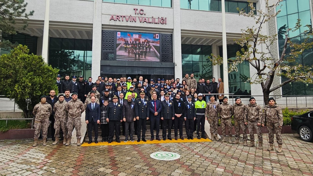 Artvin Valiliği önünde düzenlenen çelenk sunma programına il protokolü, emniyet mensupları ve vatandaşlar katıldı.