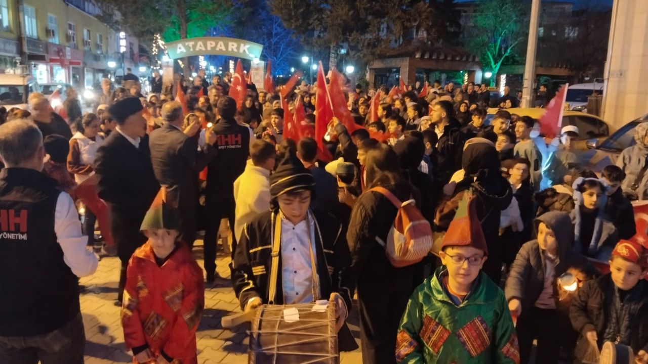 Merkez Camii önünde başlayan yürüyüş, vatandaşların ellerinde fenerlerle oluşturduğu renkli görüntülere sahne oldu. Yürüyüş, Halit Paşa Camii önünde sona erdi.