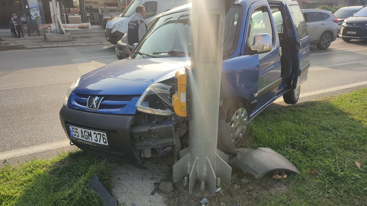 Çarpışmanın etkisiyle savrularak trafik ışığına çarpan hafif ticari araçta bulunan H.E. yaralandı.