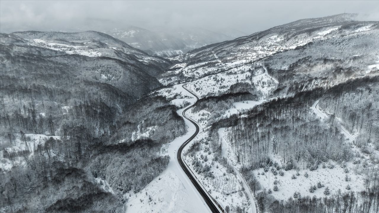 İlçenin önemli turizm merkezlerinden Akgöl Tabiat Parkı'nı da bünyesinde barındıran, kış aylarında doğa tutkunlarının uğrak noktaları arasında bulunan Çangal Dağı'ndaki kar manzarası dronla görüntülendi.