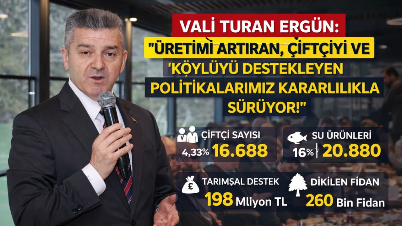 Vali Ergün, tarım ve hayvancılığın Artvin ekonomisinin temel dinamiklerinden biri olduğunu vurgulayarak, üreticiyi merkeze alan destek politikalarının somut sonuçlar verdiğini ifade etti.