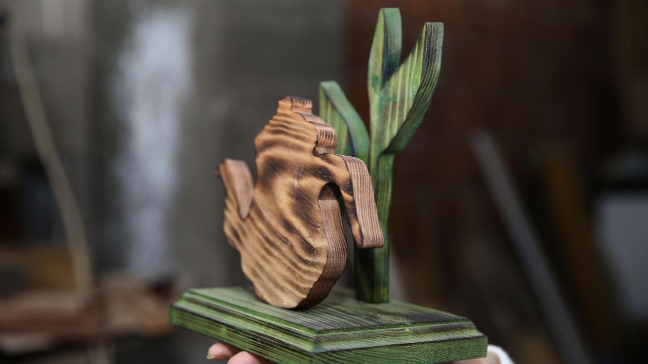 Topçu, bu sayede kendisinin de ahşaba olan ilgisinin arttığını ifade ederek, 'Özellikle kuş evlerimiz, peçetelikler ve avizelerimiz çok talep görüyor. Bu da bizim hoşumuza gidiyor. Kayınpederime fikir olarak yardımcı oluyorum. Zımparalama, yapıştırmalar, cila ve boya işlerinde ben de katkı sağlıyorum.' diye konuştu.