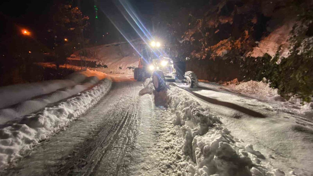 Büyükşehir Belediyesi'nden yapılan açıklamada, 'Trabzon genelinde etkisini gösteren olumsuz hava şartları nedeniyle ekiplerimiz, kapalı yol kalmaması ve vatandaşlarımızın günlük yaşamının aksamaması için 7/24 esasına göre çalışmalarını sürdürmektedir. Hasta ve cenaze bulunan mahallelerimizin yollarının açılmasına öncelik verilmektedir. Kısa süre içinde kapalı bulunan 49 mahallemizin yolu da ulaşıma açılacaktır. Tuzlama çalışmaları da şehir genelinde devam etmektedir. Özellikle gece ve sabah saatlerinde buzlanma olabileceği öngörüldüğünden, vatandaşlarımızın dikkatli ve tedbirli olmaları önem arz etmektedir' denildi.