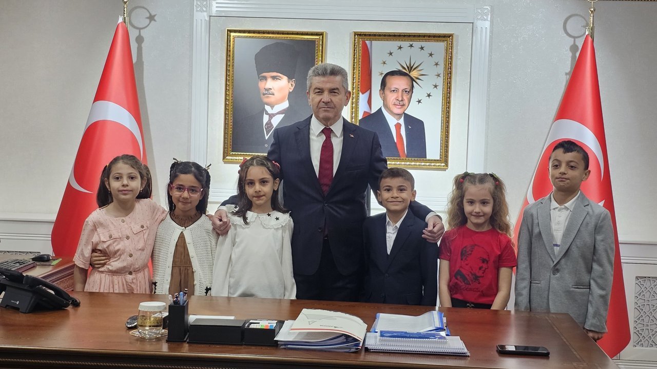 23 Nisan Ulusal Egemenlik ve Çocuk Bayramı ile Türkiye Büyük Millet Meclisi’nin açılışının 106. yıl dönümü dolayısıyla düzenlenen program kapsamında Vali Ergün, İl Milli Eğitim Müdürü Fahri Acar, öğretmenler ve öğrencileri makamında kabul etti.