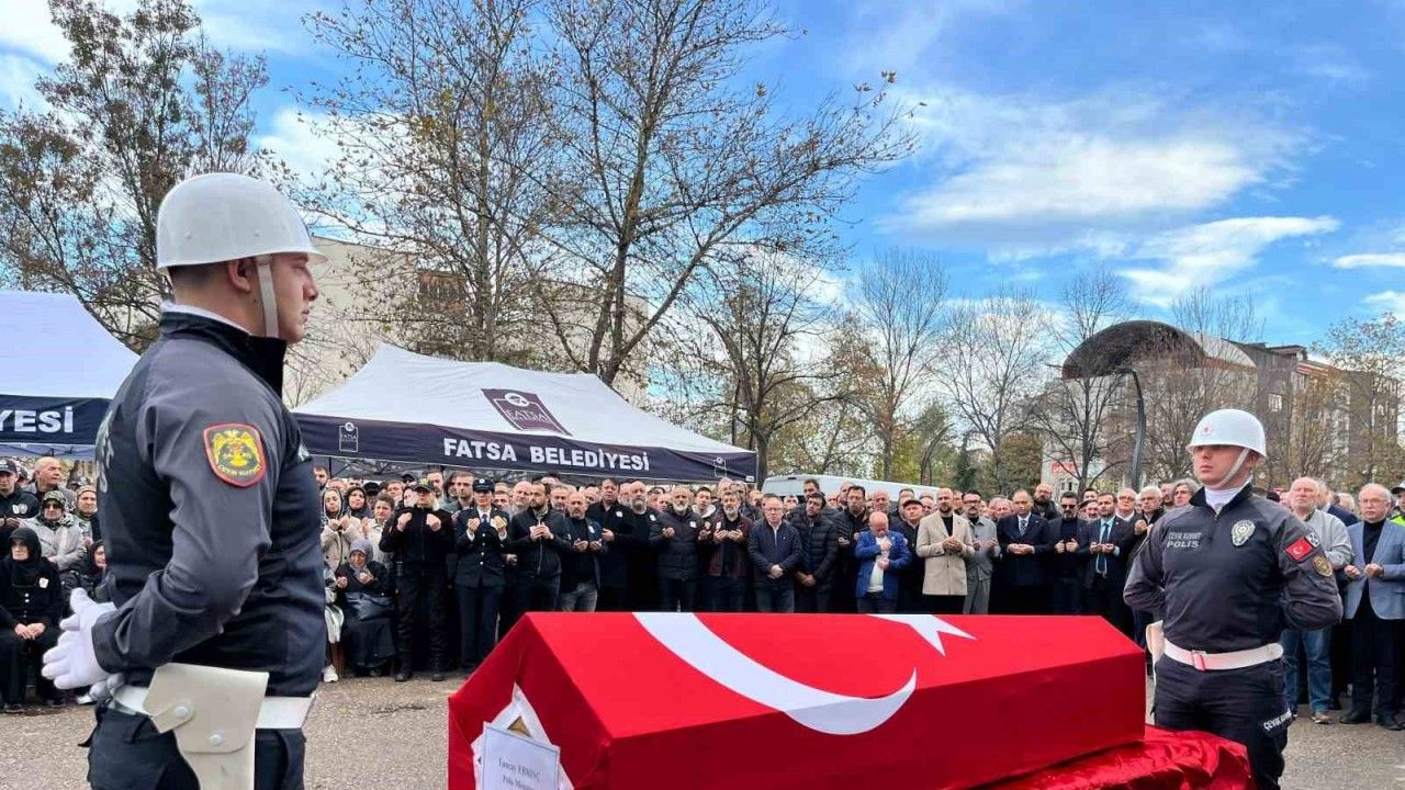 Fatsa ilçesinde trafik polisi olarak görev yapan Tuncay Ebrinç (54), geçirdiği kalp krizi sonucu Fatsa Devlet Hastanesi’ne kaldırıldı. Ebrinç, burada yapılan tüm müdahalelere rağmen dün hayatını kaybetti. Ebrinç’in ani vefatının ardından bugün Fatsa İlçe Emniyet Müdürlüğü önünde merhum polis memuru için tören düzenlendi. Ebrinç’in Türk bayrağına sarılı cenazesi, alana getirildi. Saygı duruşu ile başlayan törende, Tuncay Ebrinç’in görev süresince gösterdiği özveri ve çalışkanlık vurgulandı. Burada helallik alınmasının ardından cenaze, dualar eşliğinde omuzlarda taşınarak, defnedilmek üzere memleketi Samsun’a uğurlandı.