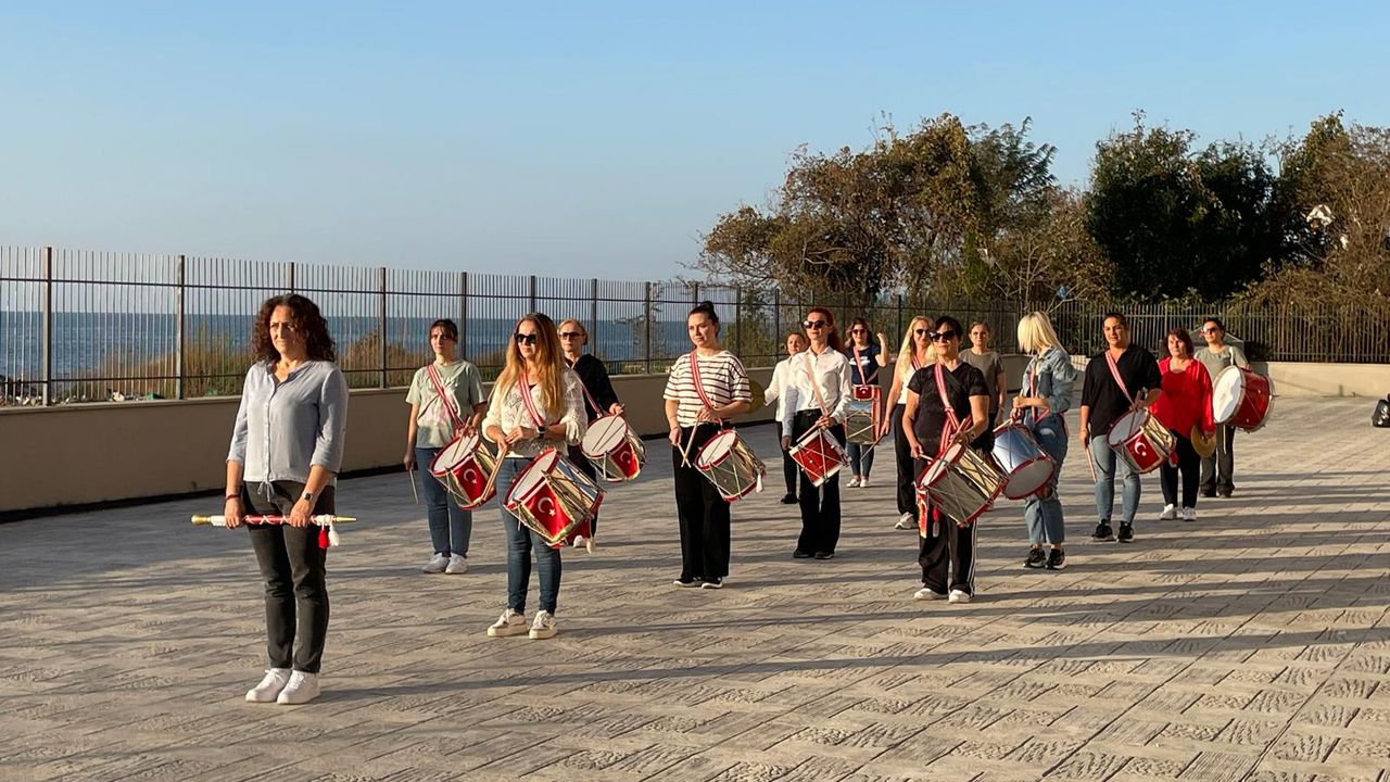 Halk Eğitim Merkezi’nde görevli Müzik Öğretmeni Esra Baykan öncülüğünde kurulan kadın bando takımı, 29 Ekim Cumhuriyet Bayramı’nın 102’nci yıl dönümü kutlamalarına hazırlanıyor. Trampet, davul, borazan ve zil gibi enstrümanlarla çalışmalarını sürdüren 20 kadın, hem ilçe sokaklarında hem de Halk Eğitim Merkezi bahçesinde provalarını gerçekleştiriyor.