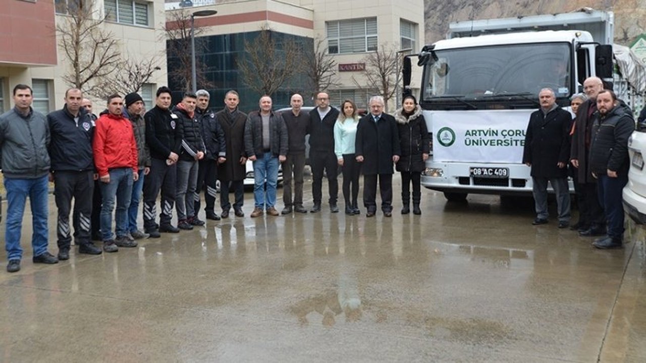 Artvin Valiliği ve Artvin Çoruh Üniversitesi birlikteliğinde yürütülen “Deprem Yardım Kampanyası” kapsamında deprem bölgesine gidecek yardımların toplanması peyderpey devam ediyor. Artvin Valiliği ve Artvin Çoruh Üniversitesi Nihat Gökyiğit Kongre ve Kültür Merkezinde toplanan yardım paketleri, AFAD İl Koordinasyon Merkezine ulaştırılmak üzere yola çıktı.