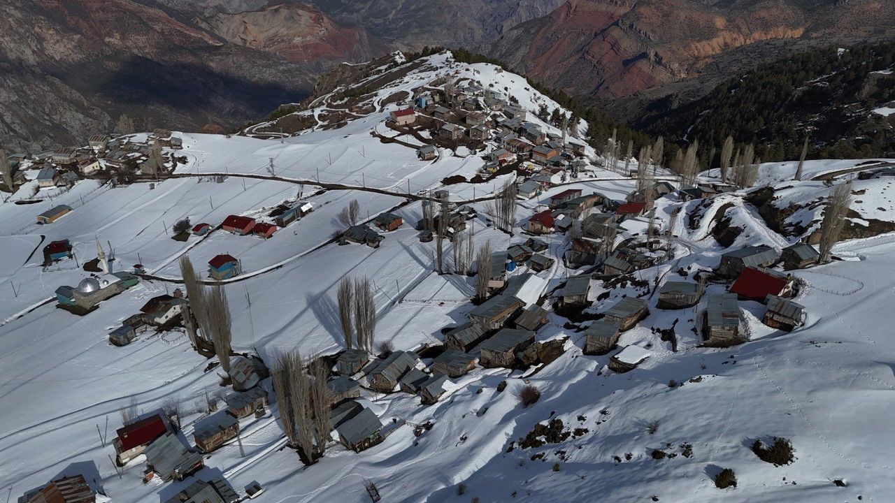 Dronla havadan görüntülenen köy, doğal dokusunu koruyan yapısıyla izleyenleri kendine hayran bırakıyor. Havadan çekilen görüntülerde, beyaz örtüyle kaplanan evler ve doğayla iç içe yaşam net bir şekilde gözler önüne seriliyor.