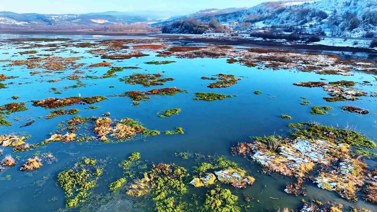 Samsun'daki 16 korunan alandan biri olan Ladik Gölü Sulak Alanı, kar yağışıyla tamamen beyaza büründü. Yaz aylarında göçmen kuşlar ve çok sayıda yaban hayvanına ev sahipliği yapan göl, kış mevsiminde de doğal yaşamın sürdüğü önemli alanlardan biri olma özelliğini koruyor. Ladik'e özgü turna balığının yaşam alanı olan göl, kışın farklı bir kimliğe bürünerek doğaseverlerin ilgisini çekiyor.