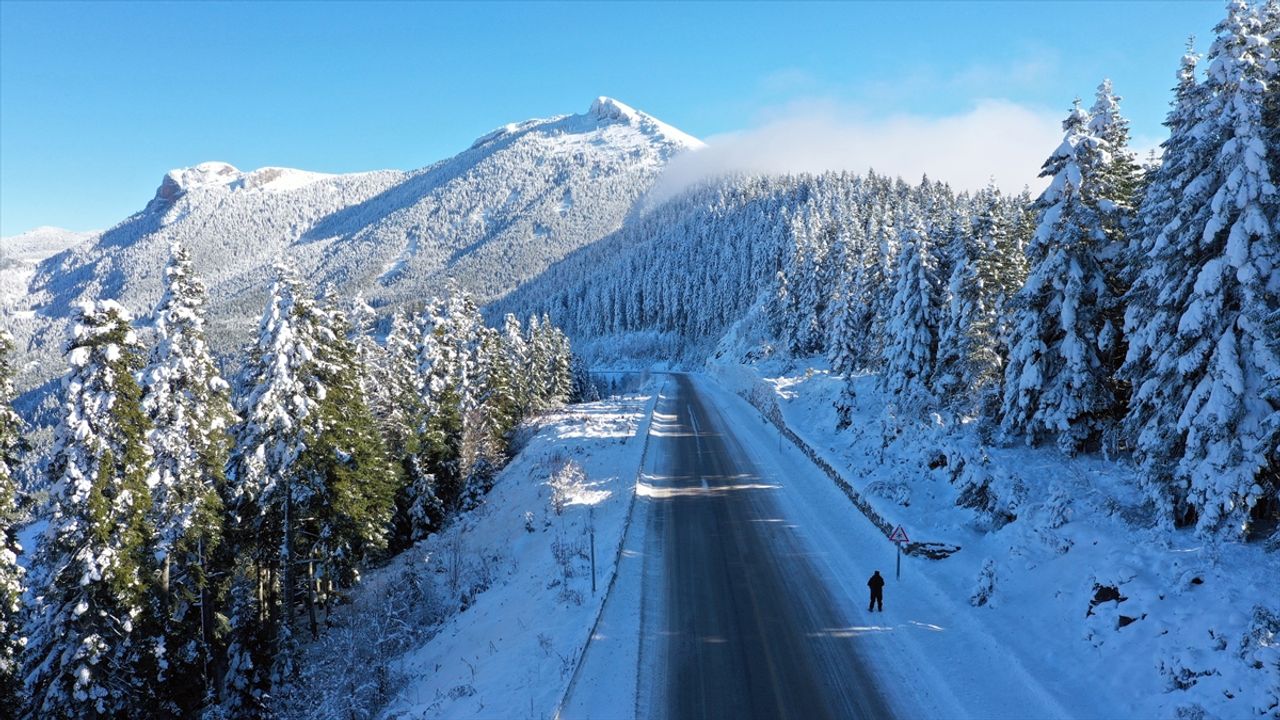 Küre Dağları'nın en yüksek noktalarından biri olan Yaralıgöz Geçidi'nde karla kaplanan orman, güzel manzara oluşturdu.