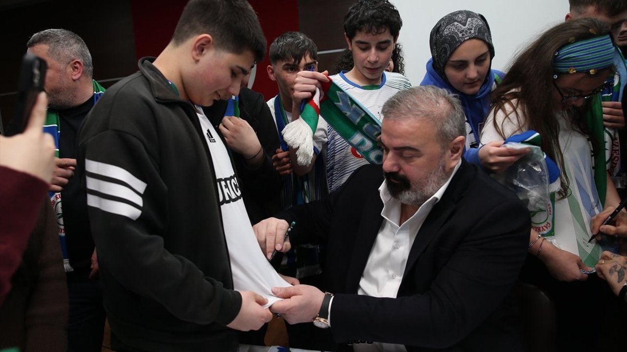Başkan Turgut, teknik direktör Uçar ve futbolcular, Ali Metin Kazancı Rize Lisesi'nde öğrencilerin yoğun ilgisiyle karşılandı.
