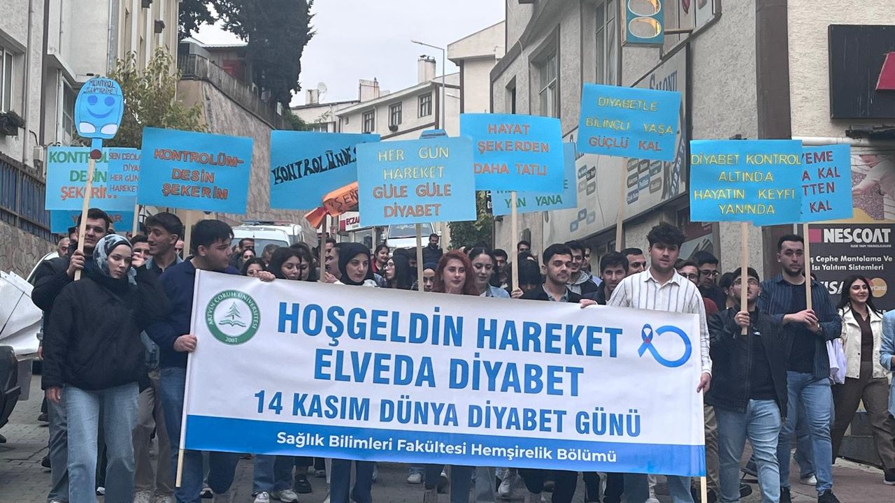 Yürüyüş boyunca üniversite öğrencileri “Hoşgeldin Hareket, Elveda Diyabet” yazılı pankart taşıyarak, fiziksel aktivitenin diyabeti önlemedeki önemine vurgu yaptı.