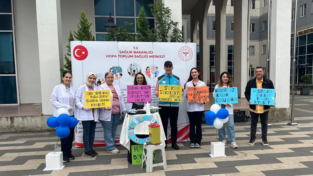 Hopa Toplum Sağlığı Merkezi tarafından kurulan stantta sağlık personelleri vatandaşların kan şekeri ölçümlerini gerçekleştirdi. Ölçüm sonuçları normal sınırların dışında çıkan vatandaşlar, gerekli tetkik ve takipler için ilgili birimlere yönlendirildi. Ayrıca diyabet hakkında bilgilendirici broşürler dağıtılarak vatandaşlara hastalıkla ilgili farkındalık kazandırıldı.