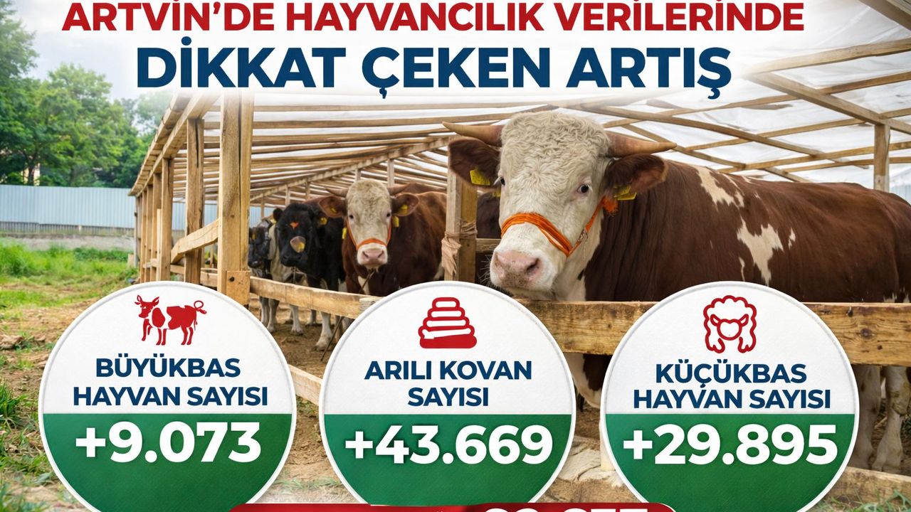 Açıklanan verilere göre Artvin genelinde hayvancılık alanındaki toplam artışın 82 bin 637 olduğu bildirildi. Veriler, kentte üretim kapasitesinin güçlendiğini ve hayvancılık faaliyetlerinin gelişmeye devam ettiğini ortaya koydu.