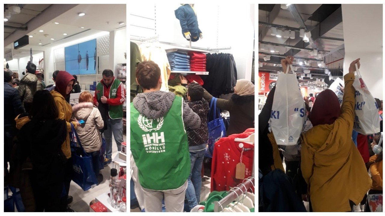 İHH’nın ‘iyilik Soğuk Geçirmez’ kampanyası çerçevesinde toplanan yardımlar ile çocuklar alışveriş merkezine götürülerek beğendikleri kıyafetleri aldılar.