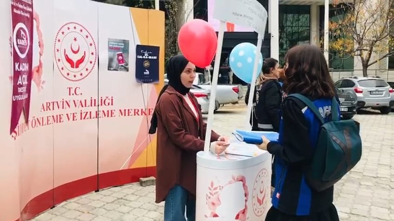 Kadına Yönelik Şiddetle Uluslararası Mücadele Günü sebebiyle Artvin Şiddeti Önleme ve İzleme Merkezi (ŞÖNİM), Artvin Aile ve Sosyal Hizmetler İl Müdürlüğü, Artvin İl Jandarma Komutanlığı ve Artvin İl Emniyet Müdürlüğü koordineli bir çalışma ile Artvin’li vatandaşlara bilgilendirme yapılarak büroşür dağıtıldı.