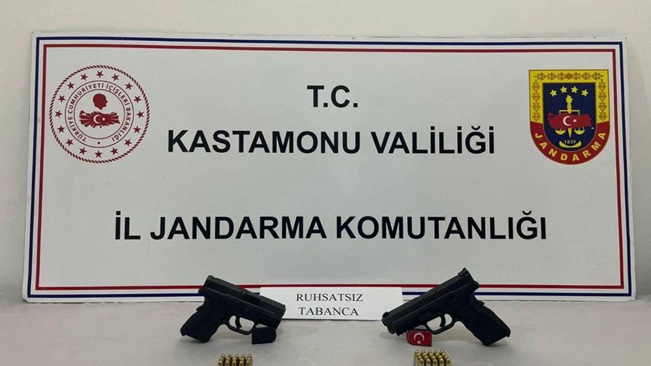 Şüphelilerin üst aramasında 2 ruhsatsız tabanca ve şarjör ile 13 tabanca fişeği ele geçirildi.