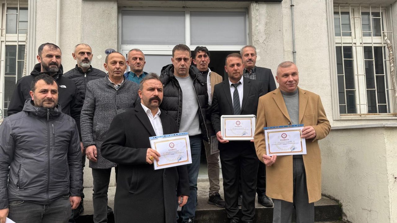Adliye binası önünde bir araya gelen Başkan Kerim Kara ile yönetim kurulu üyeleri, seçim sürecinin tamamlanmasının ardından düzenlenen mazbata teslim törenine katıldı. Gerekli evrak işlemlerinin tamamlanmasının ardından mazbatalarını teslim alan yeni yönetim, Borçka Şoförler ve Otomobilciler Odası’nda yeni dönemi başlatmış oldu.