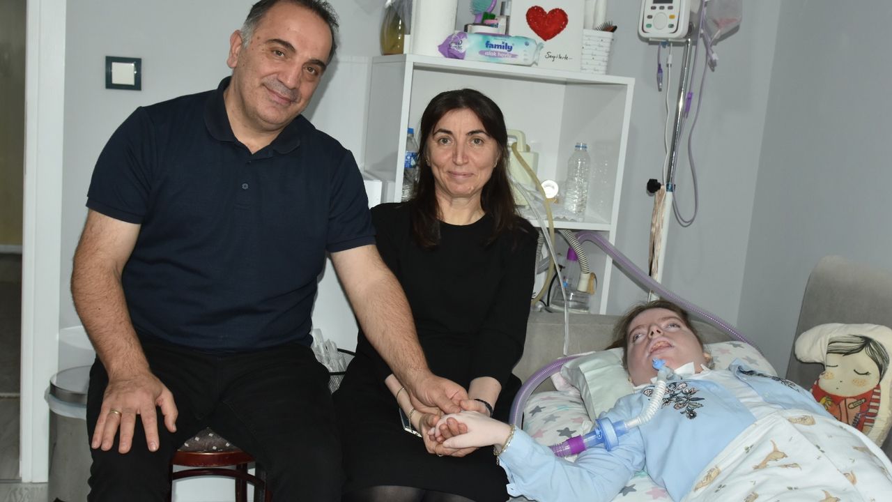 Evlerinde oksijen cihazı, mama pompası ve solunum destek ekipmanlarının bulunduğu özel bir bakım düzeni oluşturan aile, tedavisi olmayan bu süreçte kızlarının yanında olmayı sürdürüyor.