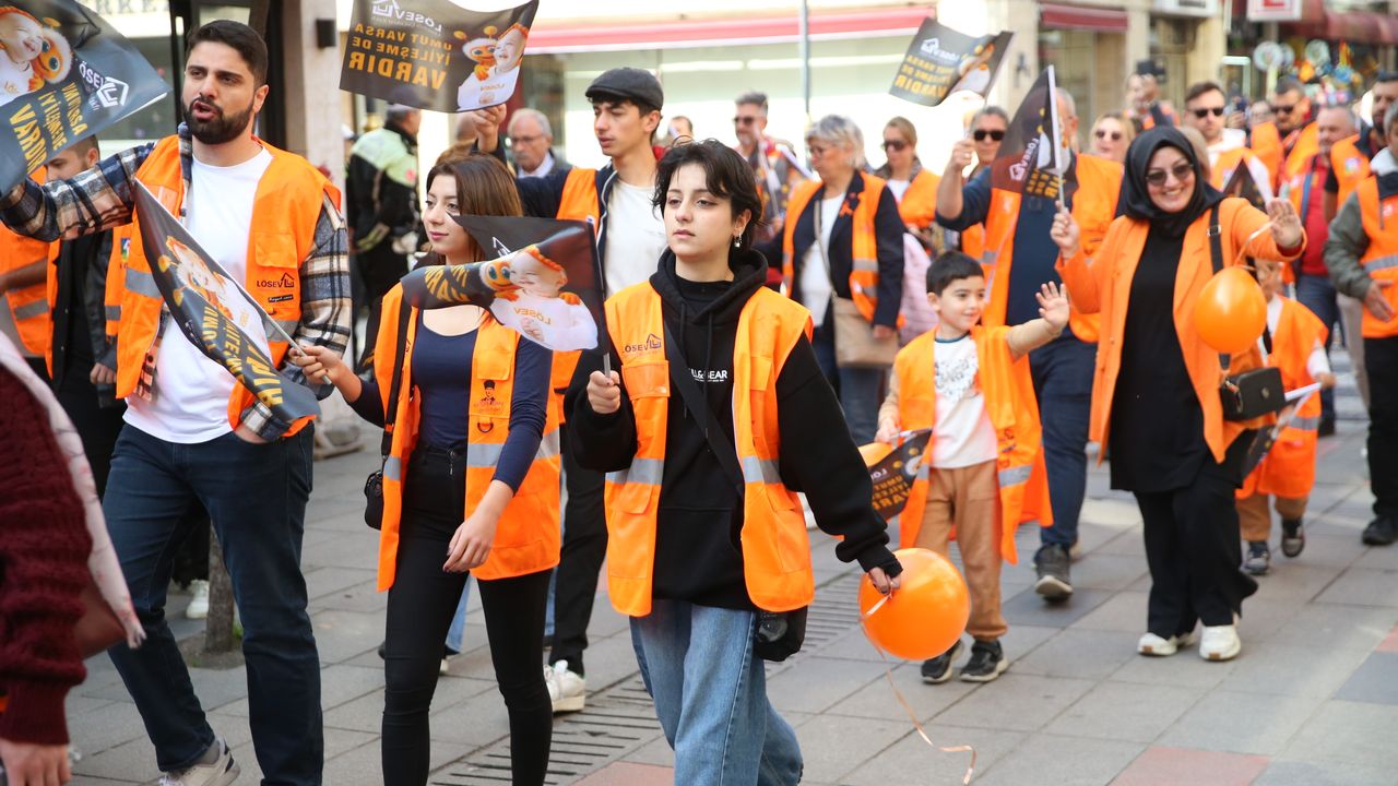 Lösemiyle mücadelenin simgesi olan turuncu kıyafetler giyen katılımcılar, ellerindeki balonları gökyüzüne bıraktı.