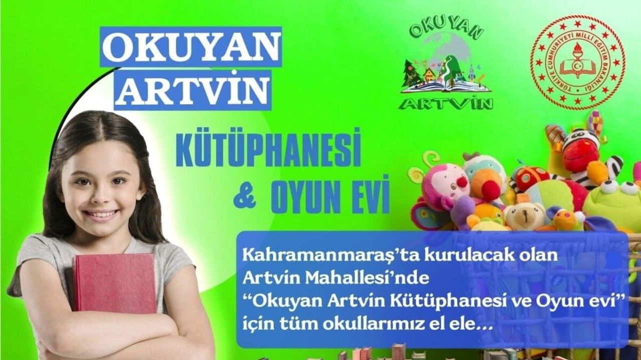 Yapılan açıklamada şu ifadelere yer verildi: “İl Valiliğimiz koordinasyonunda başlatılan ve Kahramanmaraş ilimizde yapılmakta olan ‘Artvin Mahallesi’ yapım aşamasındadır.Milli Eğitim camiası olarak, bu mahalle içinde tahsis edilen bir konteyneri ‘Okuyan Artvin Kütüphanesi ve Oyun evi’ olarak çocuklarımızın kullanımına açılması planlanmaktadır.Buna istinaden, hepimizin desteği ile aşağıda listelenen malzemelerin belirtilen kriterlere dikkat edilerek, 1 mart çarşamba gününe kadar okullarınıza getirebilirsiniz.Kitap – Test Kitabı – Boya Kitabı: Üzeri yazılmamış, yırtılmamış, kullanılır durumda nitelikli, içeriğine dikkat edilerek seçilmiş; okul öncesi, ilkokul ve ortaokul seviyelerine göre: Kırtasiye ve sanat malzemesi, yeni ve kullanılmamış. Kutu Oyunları, Zekâ Oyunları, eksiksiz ve iyi durumda olması koşuluyla ikinci el olabilir ya da yeni alınabilir. Oyuncak, yıkanmış, temizlenmiş oynanabilir, deforme olmamış durumda ikinci el oyuncak ya da yeni alınabilir.Gelen tüm bağışlar okullarımızda toplanarak, bir komisyon tarafından değerlendirilecek ve deprem bölgesine gönderilecektir.”